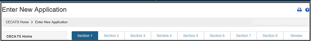 A status bar at the top of every page will track your progress through each step of the application process as shown in Figure 5 below.