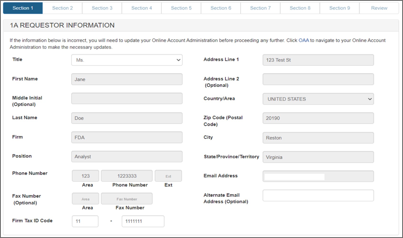Figure 7: Section 1 - Requestor