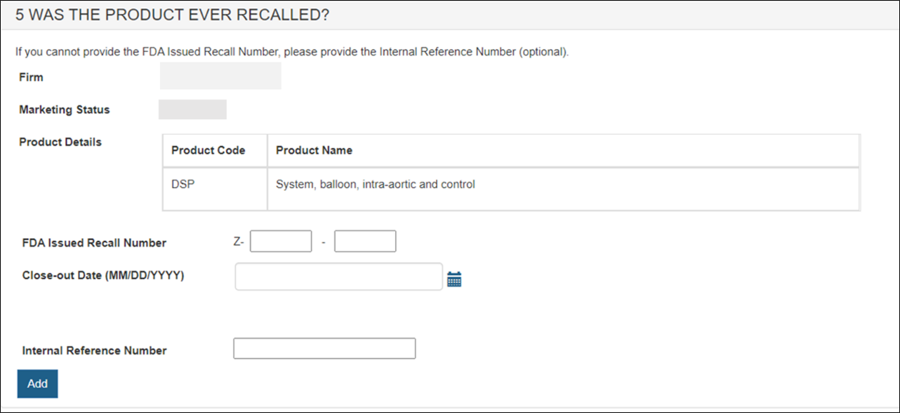 NOTE: The format of the recall number is Z-XXXX-YYYY. Please enter the eight-digit number as shown in Figure 22 below.