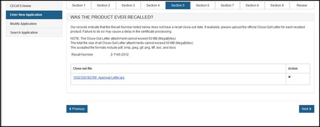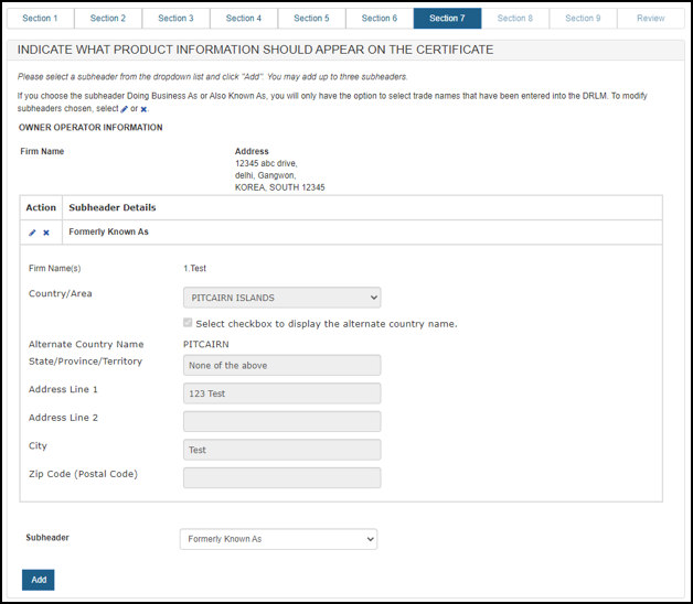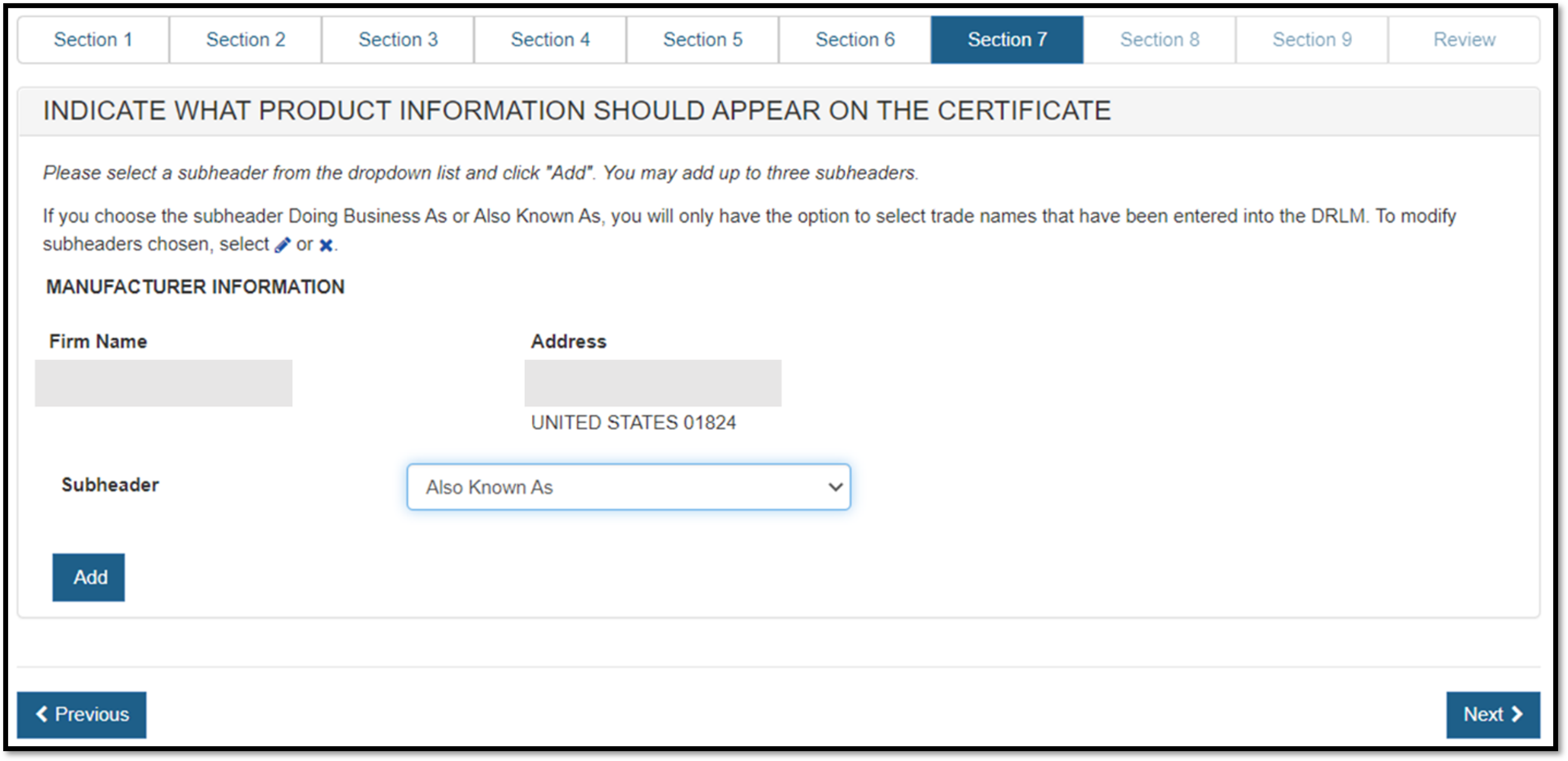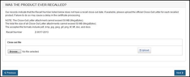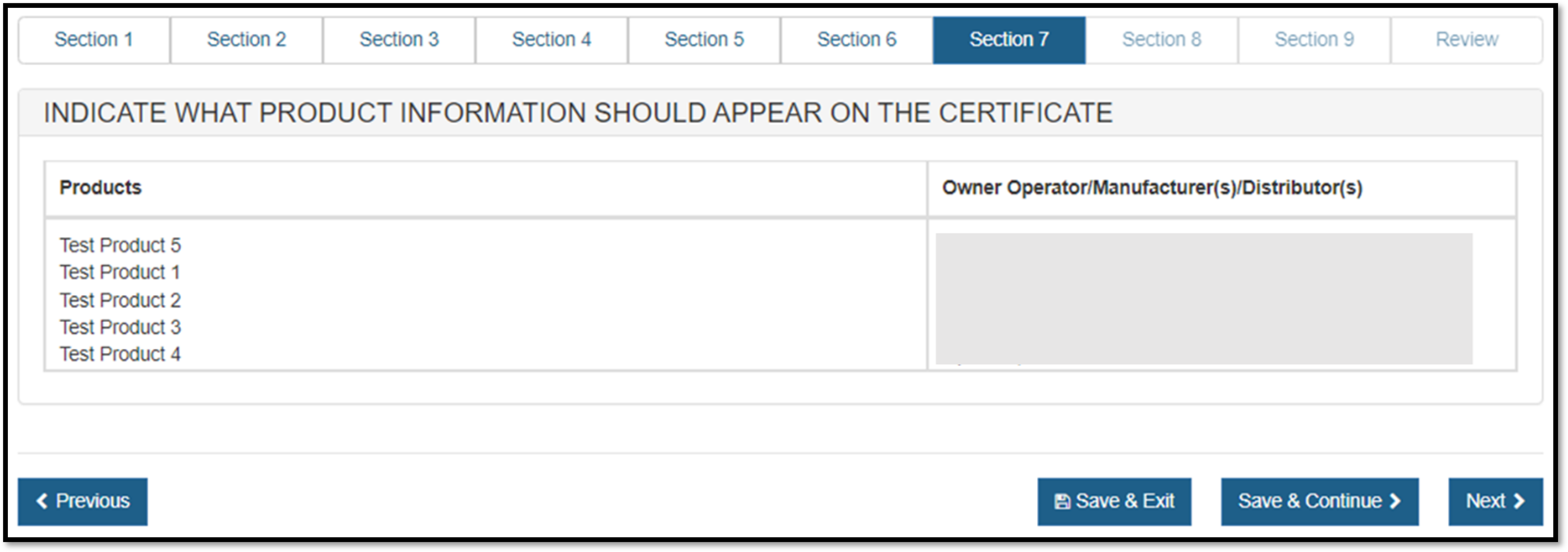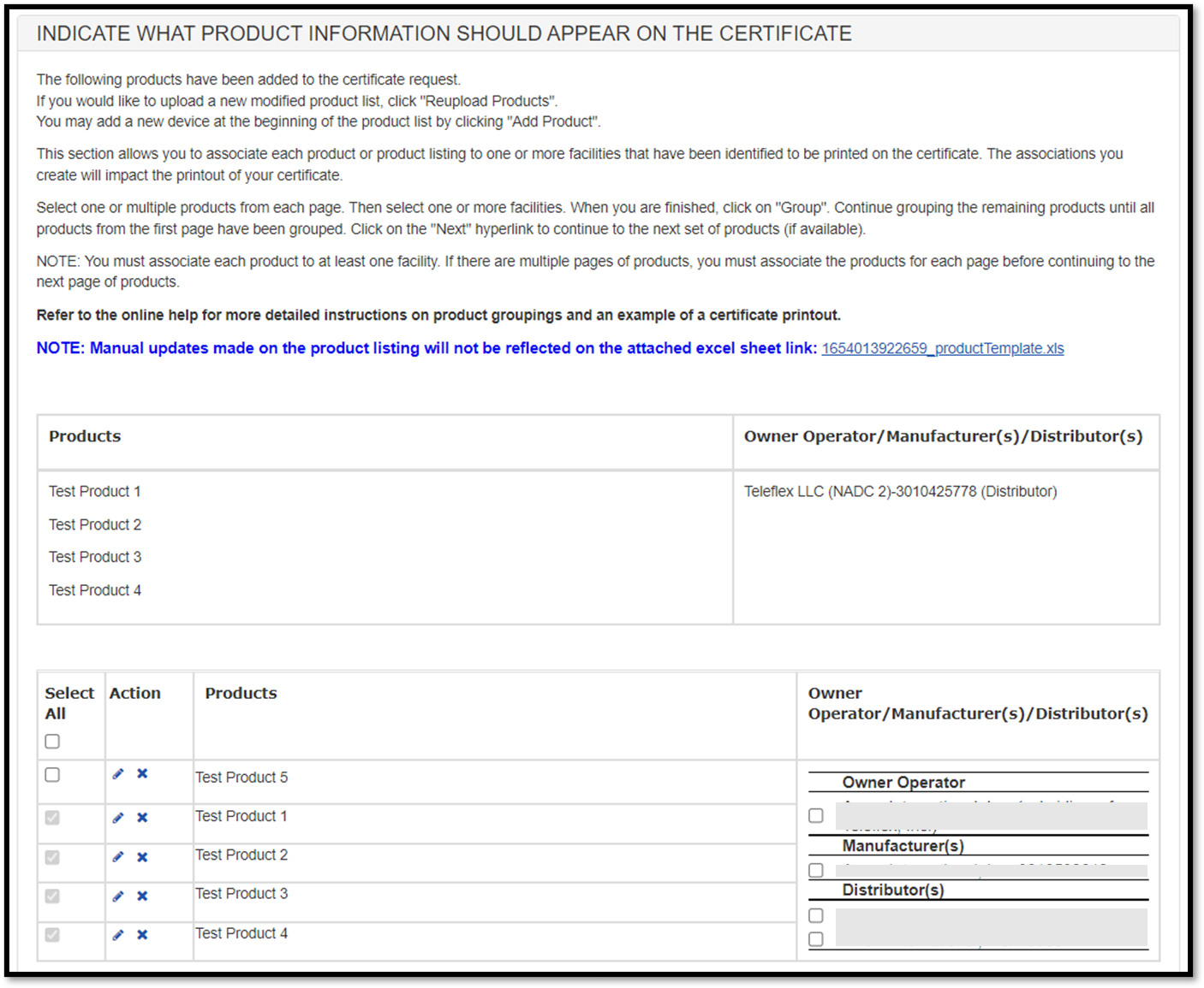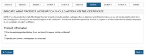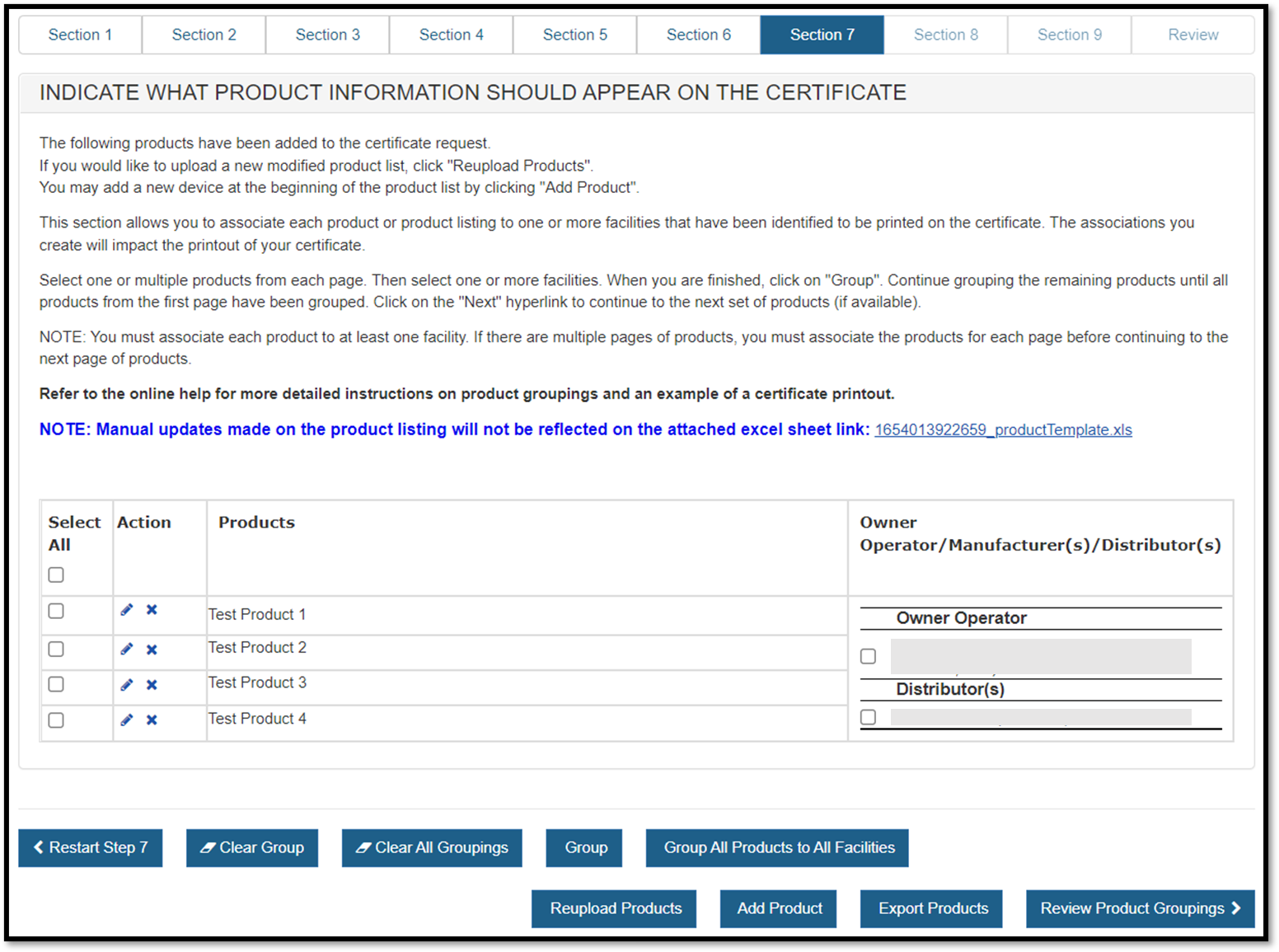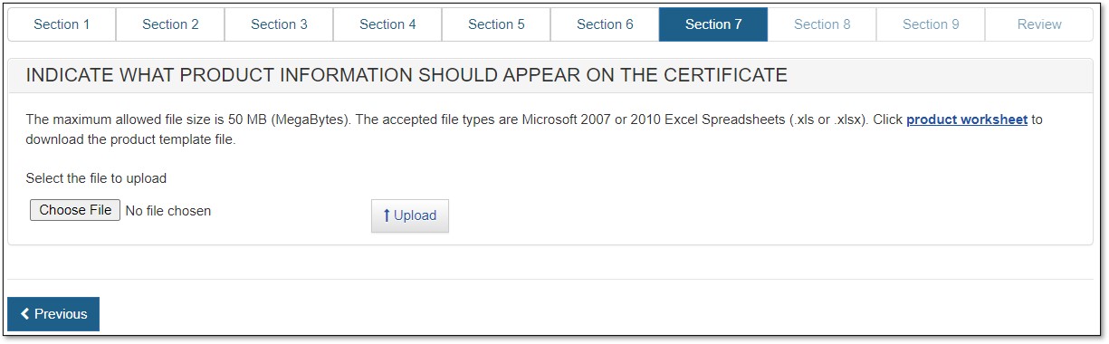 NOTE: The order of the products displayed on the certificate will be the same order of the products entered in Section 4 or on the product template upload file.