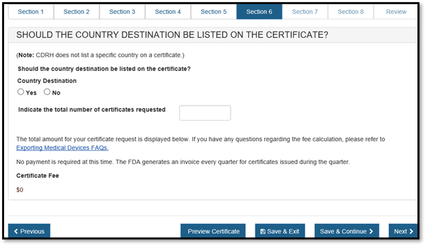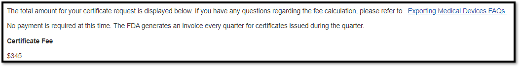 NOTE: The FDA will invoice your firm quarterly for all certificates issued during the quarter.