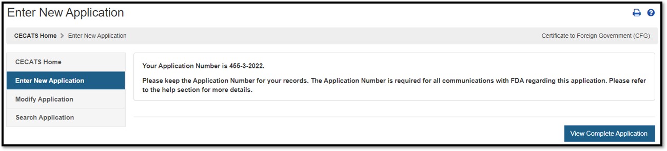The Center for Devices and Radiological Health (CDRH) issues several types of Export documents. When creating a new application, select Certificate to Foreign Government (CFG) as shown in Figure 4.