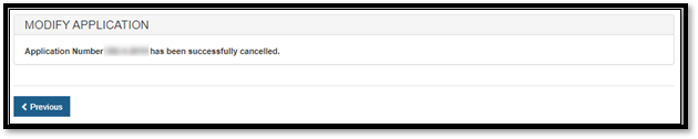 This option allows an application to be cancelled. In order to cancel an application, the application must be in one of the following statuses: